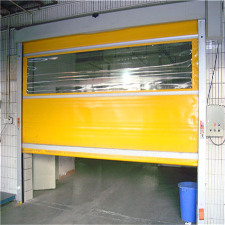 7.门帘—选用法国进口高强度工业织布,厚度0.9毫米,色彩主要有(黄、红、蓝、橙、透明等),中间加装透明视窗,使人员车辆出入更安全,具有高抗拉强度,高抗穿刺性能,适用于频繁开启,高速运转,外置铝合金肋条,增加抗风效果;